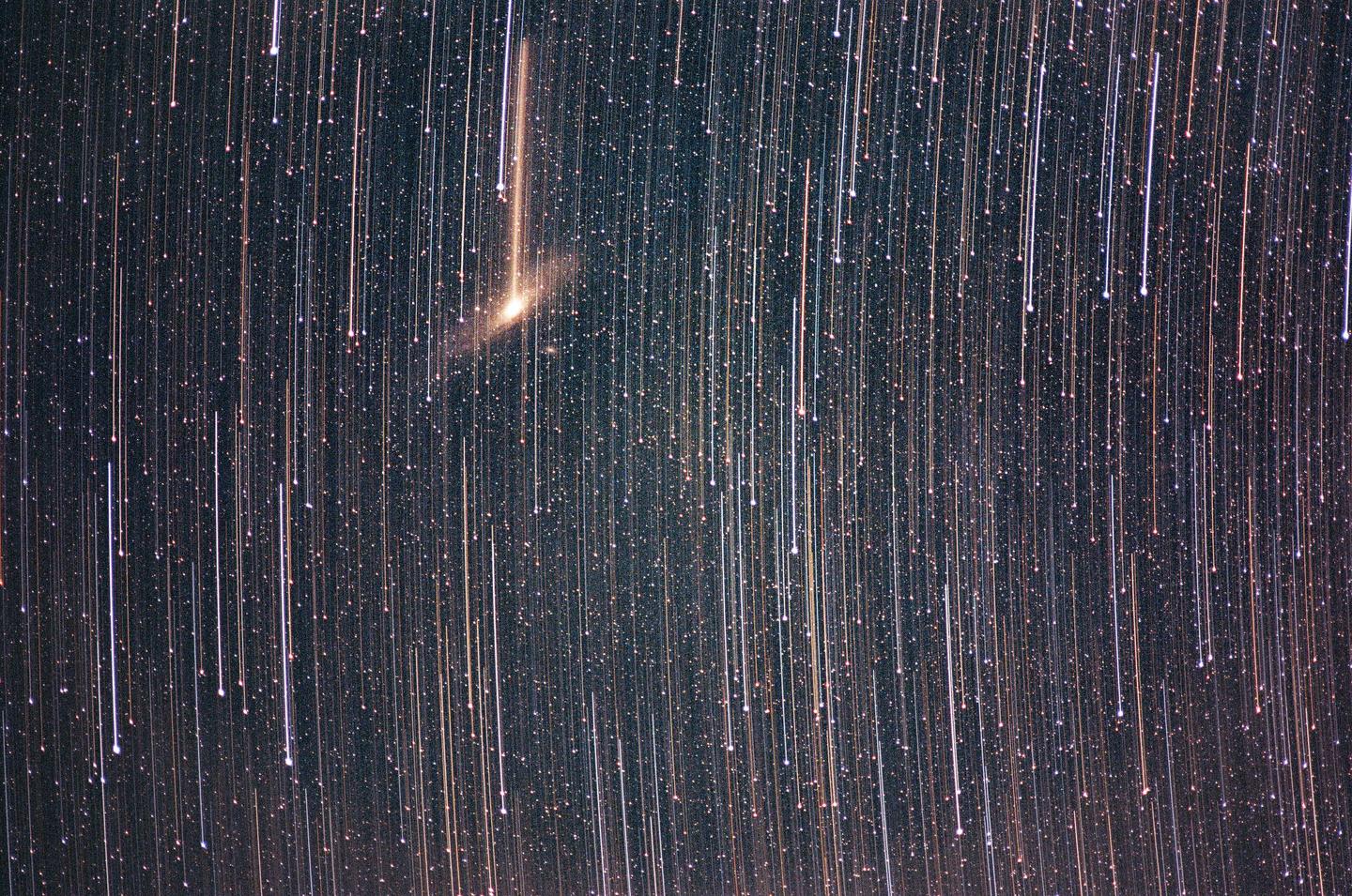 Andromeda in motion [Pentax LX + SMC 135mm 3.5 + Fuji Superia 400. 1hr exposure, guided]