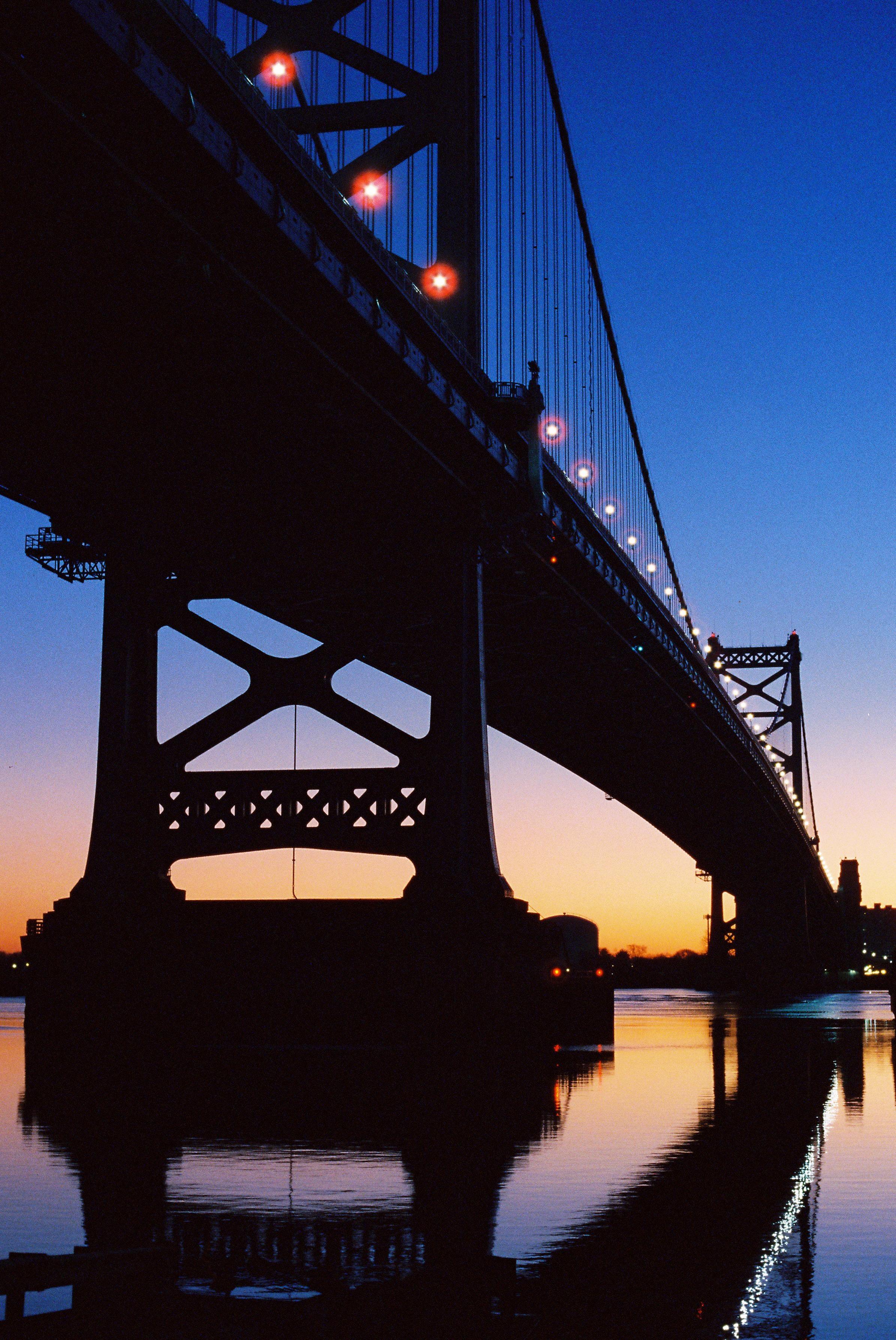 Ben Franklin Bridge - Olympus OM4T, Zuiko 50mm 3.5 & 28mm 2.8, Cinestill 800T
