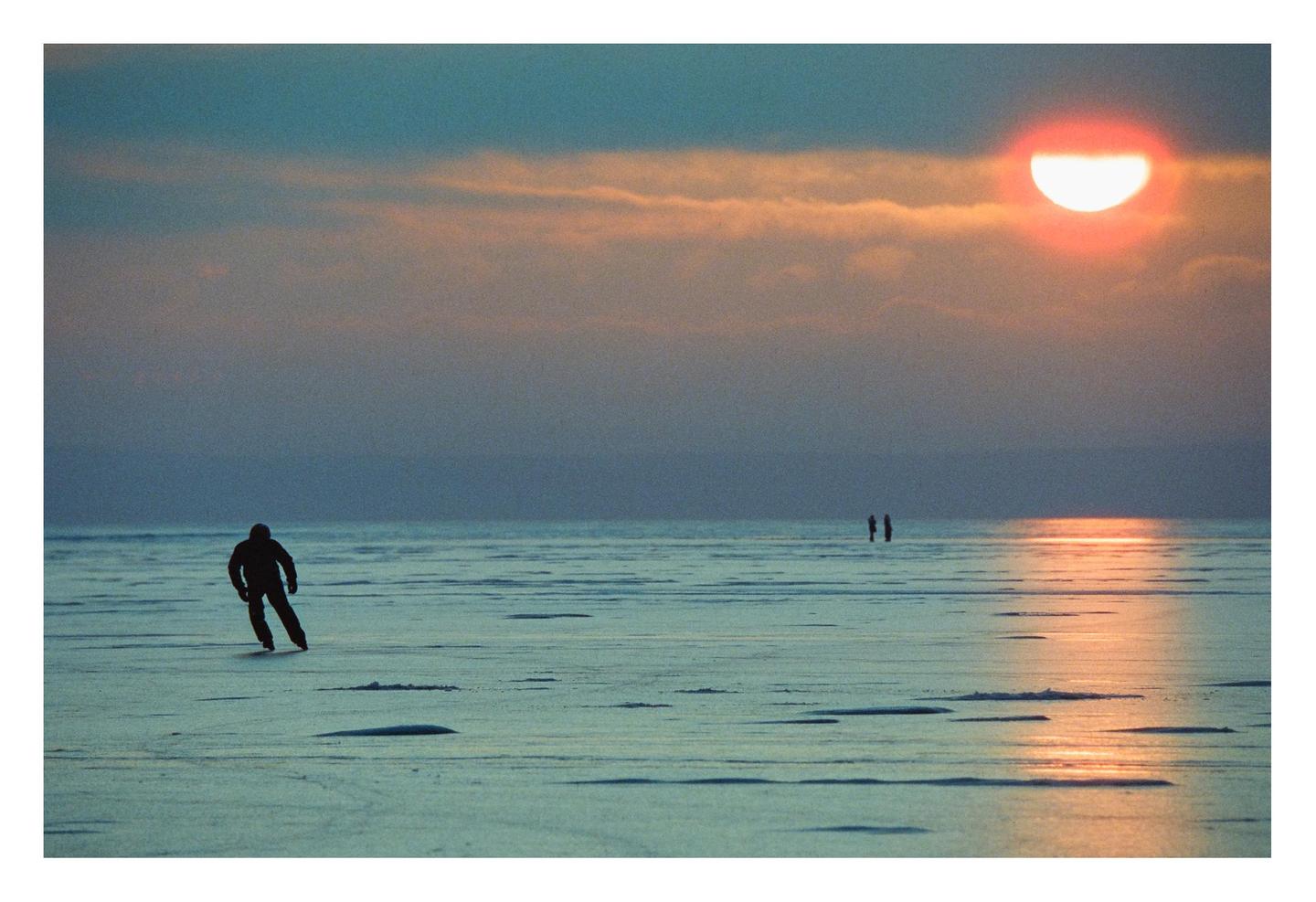 Sunset Ice Skating on a Frozen Lake | Nikon F6 Cinestill 800T