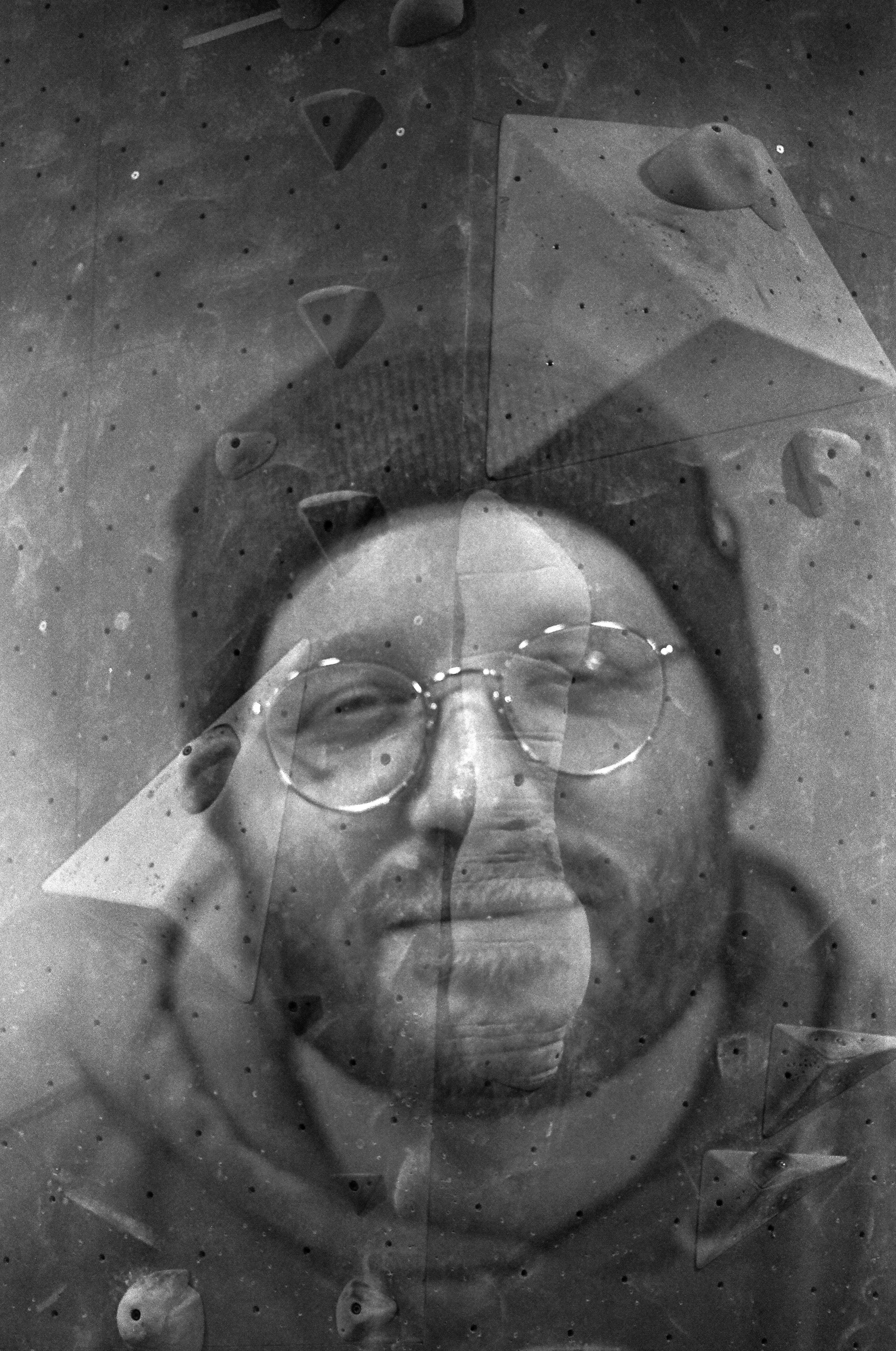 double exposure portraits at a rock climbing competition (kentmere 400, olympus om2) | AnalogDB