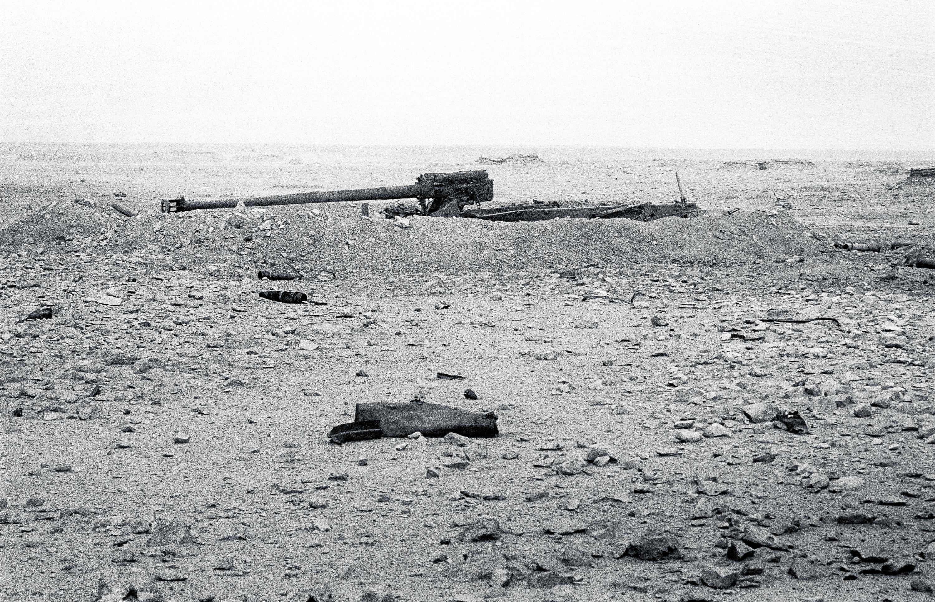35th Anniversary of Desert Storm: A destroyed Iraqi artillery battery on Objective White, Day 3 of the Ground War. A substitute photograph for the images I didn’t take, and those I choose not to share. Near As Salman, Iraq. February 1991. Tri-X 400