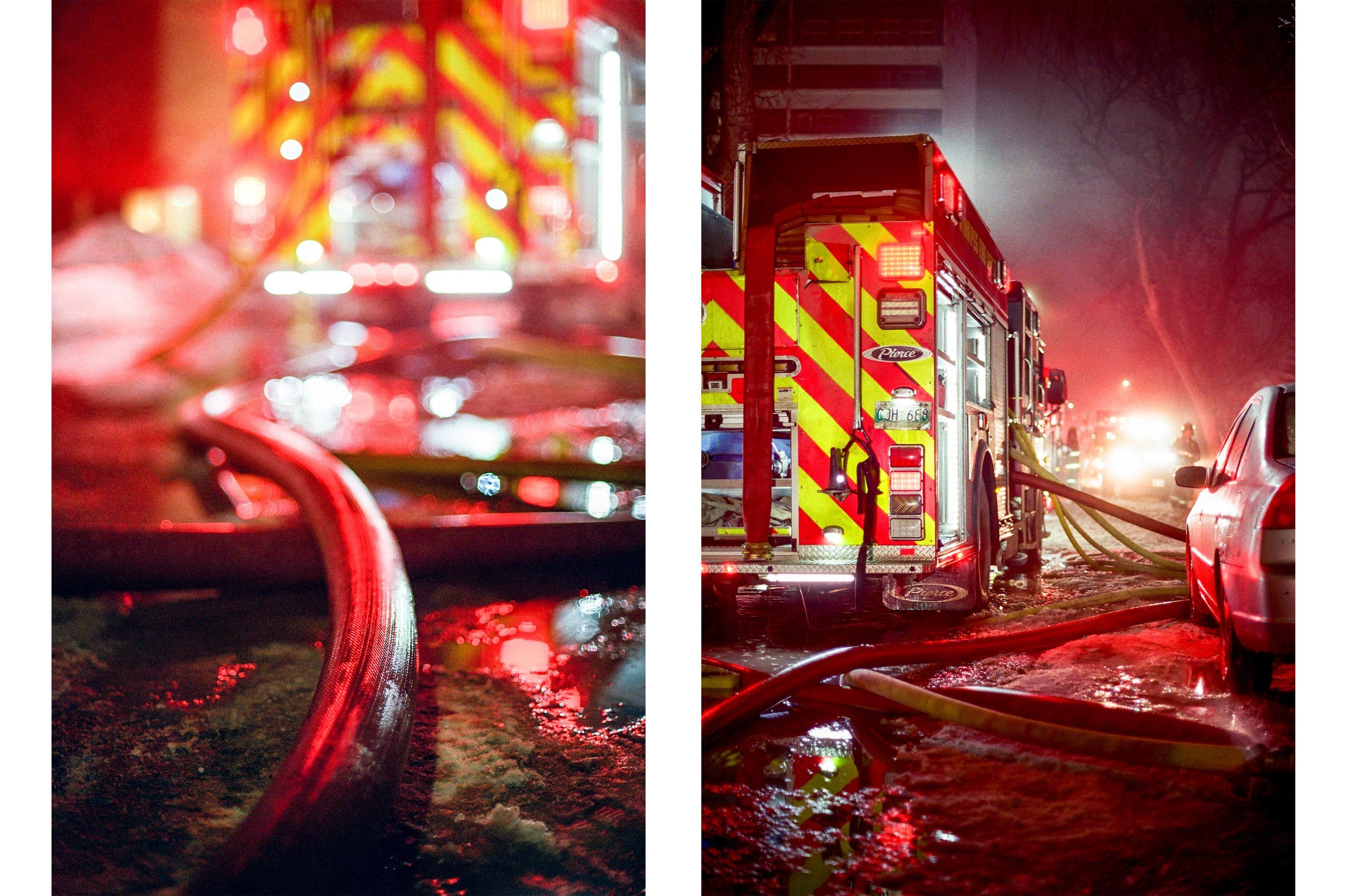 Firefighters on Cinestill 800T, Ultramax 400. [Canon AE-1, nFD 50mm f1.4]